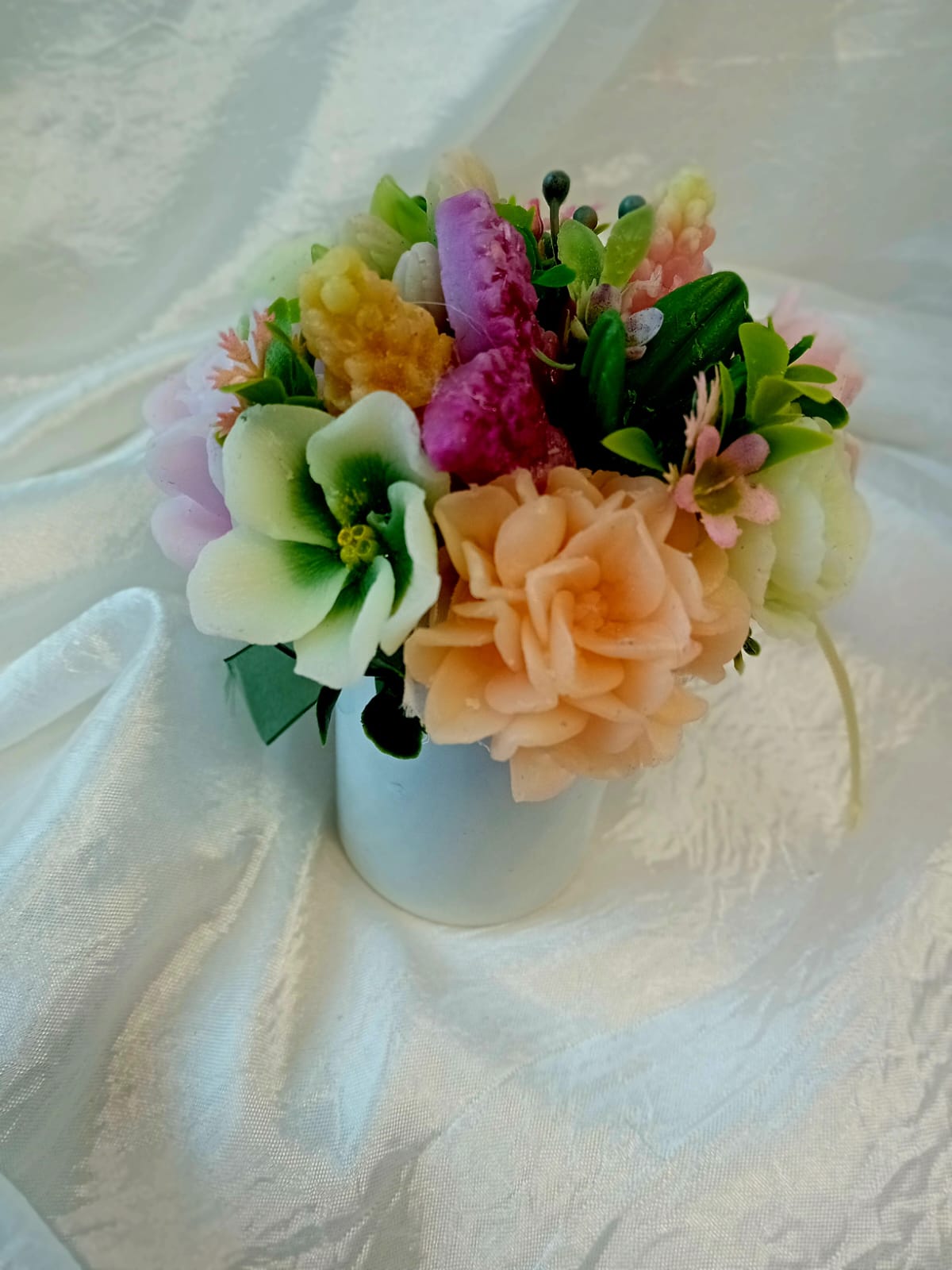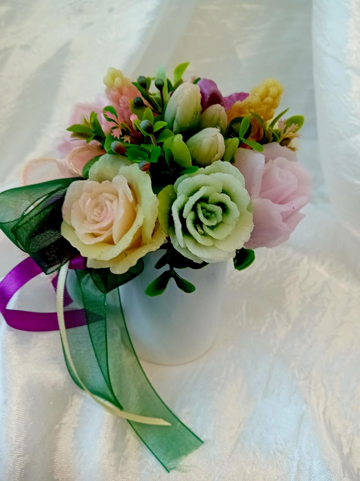 Povzneste svoje zmysly očarujúcou krásou mojich mydlových kompozícií inšpirovanými krásou prírody. Objavte dokonalú zmes elegancie a vône, ktorá zútulni a prevonia každý interiér .Každá mydlová kytica je jemným aranžmánom vôní, farieb a tvarov, starostlivo upravených tak, aby kvitla ako voňavá záhrada u vás doma. Zažite harmóniu vôní prírody pri každom ručne odlievanom mydlovom výtvore. Navyše každý kus mydlovej kompozície je originál! Mydlové kvety si zachovávajú svoj krásny vzhľad oveľa dlhšie ako tradičné rezané kytice, preto sú ideálnym darčekom