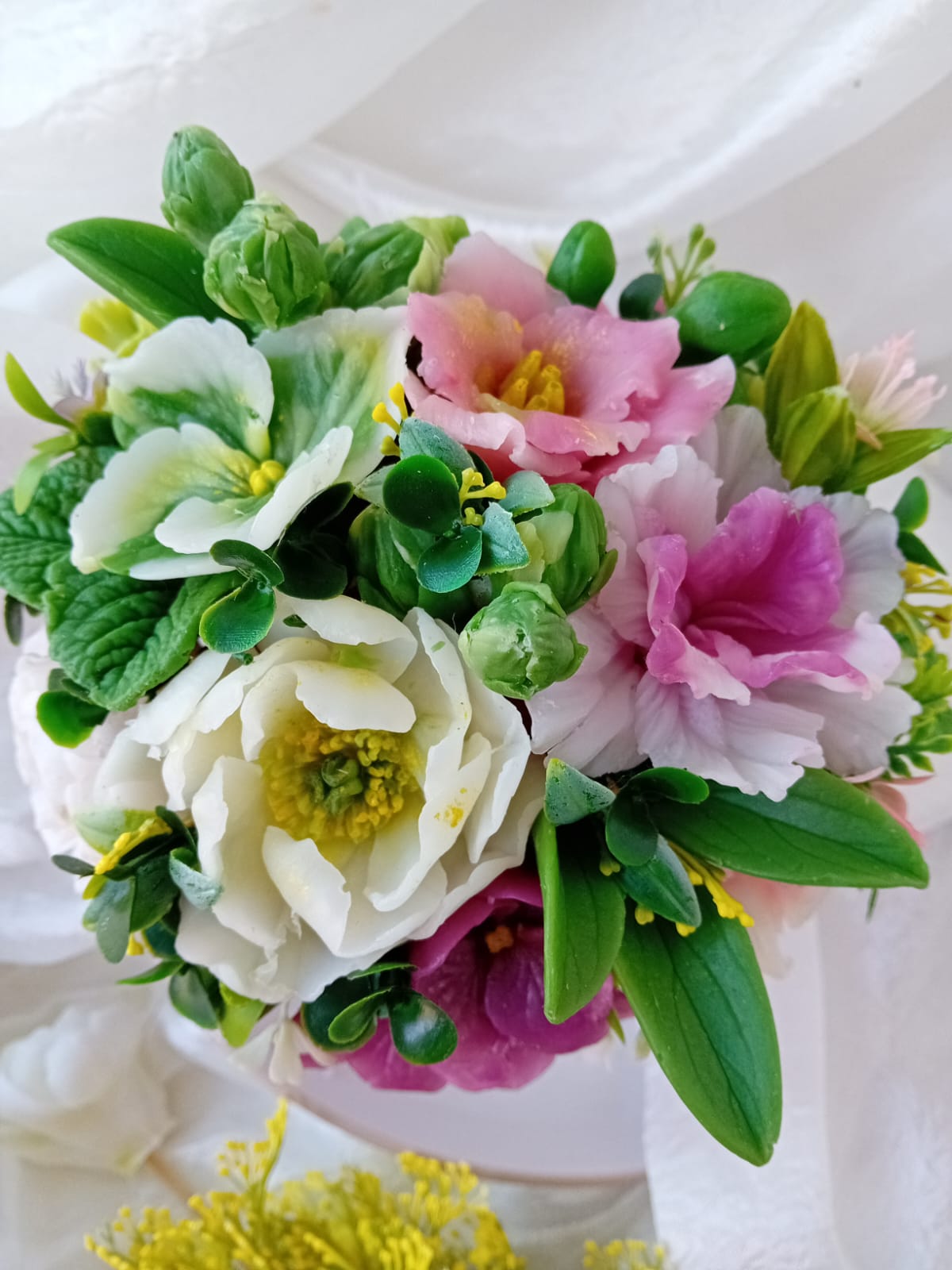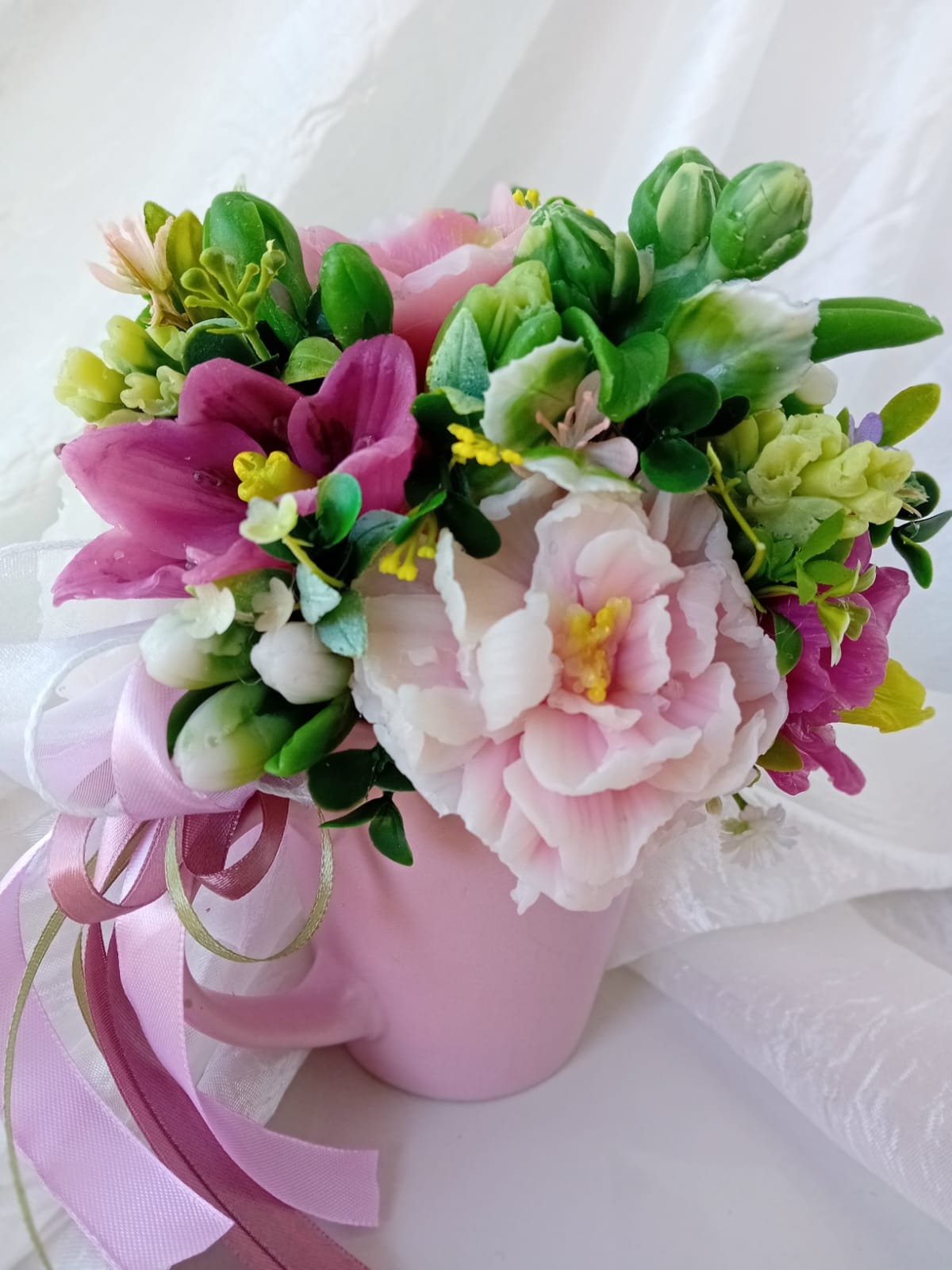 Povzneste svoje zmysly očarujúcou krásou mojich mydlových kompozícií inšpirovanými krásou prírody. Objavte dokonalú zmes elegancie a vône, ktorá zútulni a prevonia každý interiér .Každá mydlová kytica je jemným aranžmánom vôní, farieb a tvarov, starostlivo upravených tak, aby kvitla ako voňavá záhrada u vás doma. Zažite harmóniu vôní prírody pri každom ručne odlievanom mydlovom výtvore. Navyše každý kus mydlovej kompozície je originál! Mydlové kvety si zachovávajú svoj krásny vzhľad oveľa dlhšie ako tradičné rezané kytice, preto sú ideálnym darčekom.
